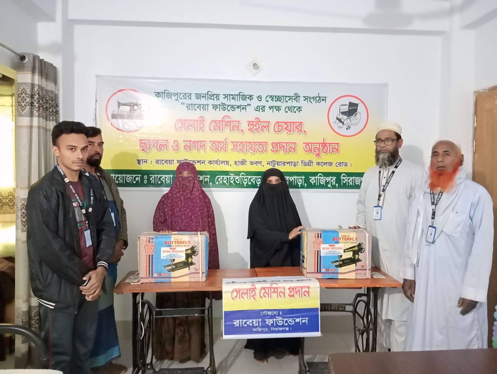 কাজিপুরের রাবেয়া ফাউন্ডেশন এর সেলাই মেশিন পেলো হতদরিদ্র দুই নারী